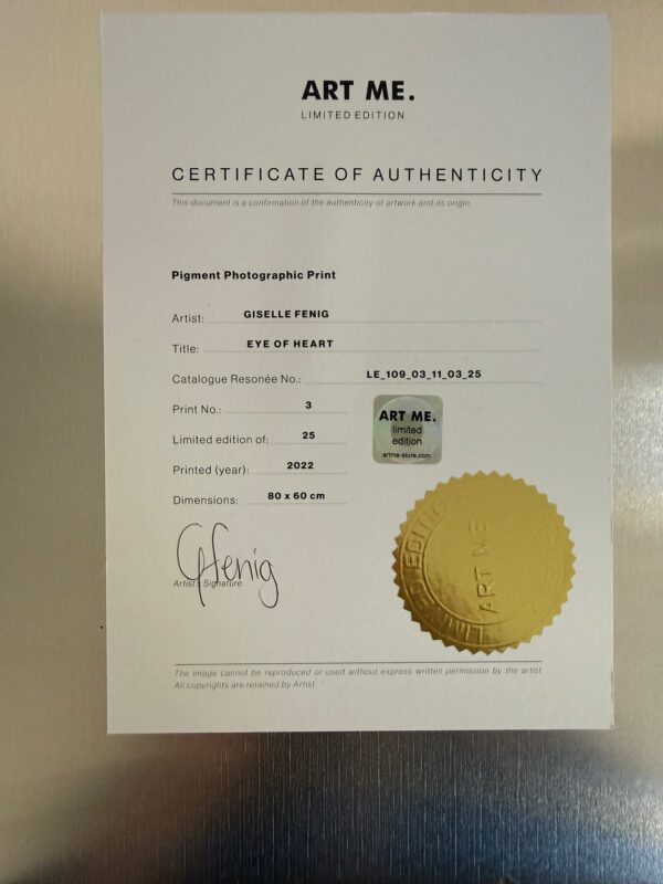 On the back of the work is a certificate of authenticity with a serial number and the artist’s signature.