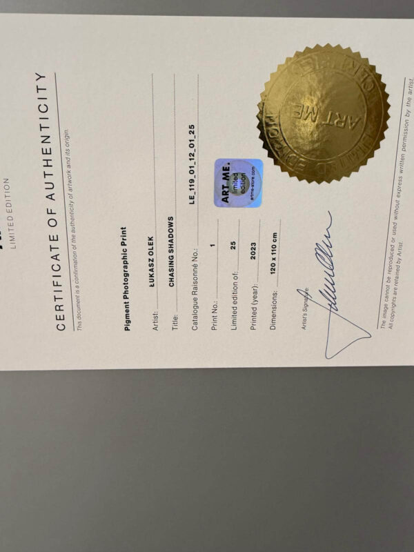 A certificate of authenticity with a serial number and the artist’s signature is attached to the back of the artwork.