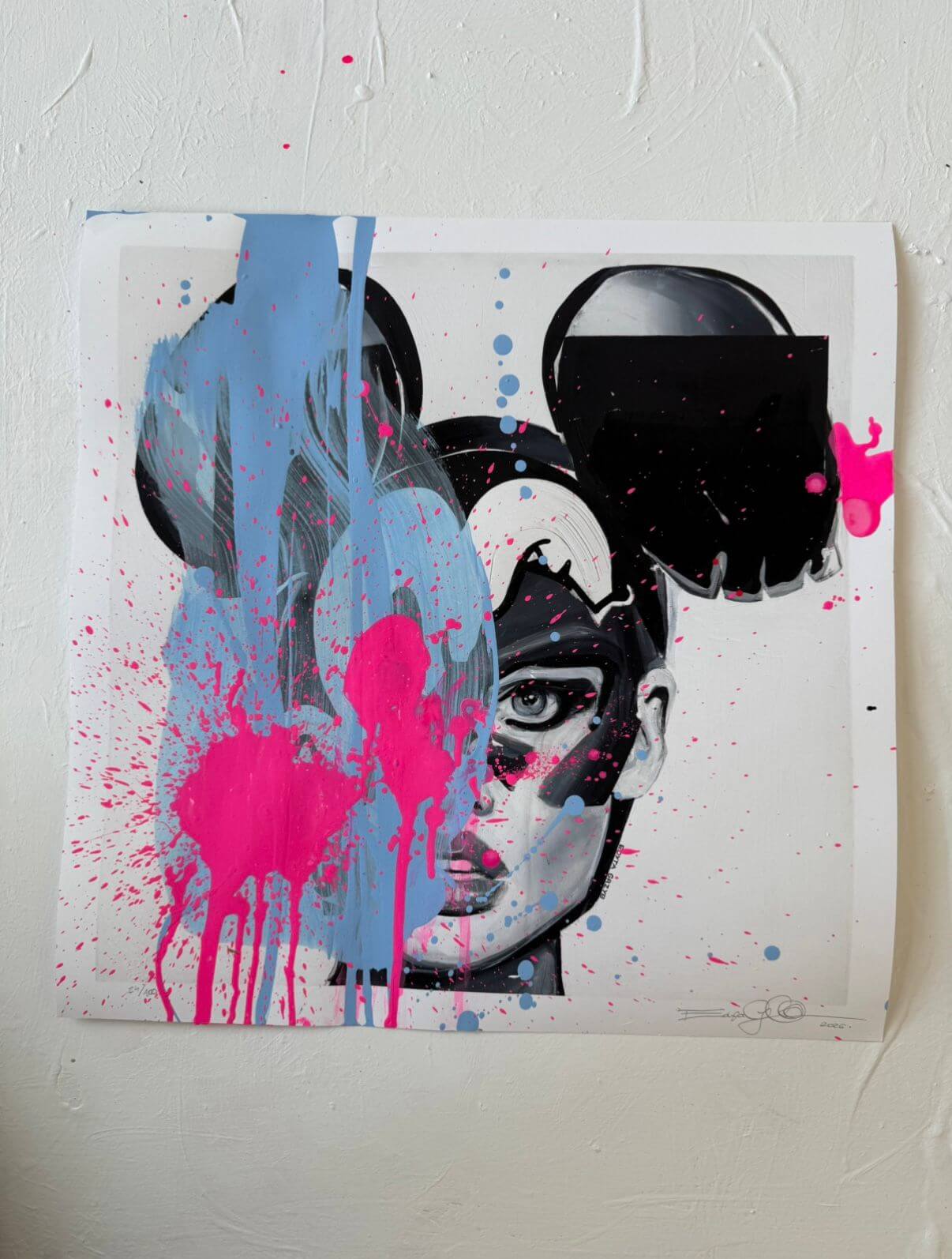 Each print is printed on high-quality paper and partially hand-painted by the artist. The base print remains black and white, while the color accents are added manually, making every piece unique. In addition, each copy is numbered and signed on the front margin.