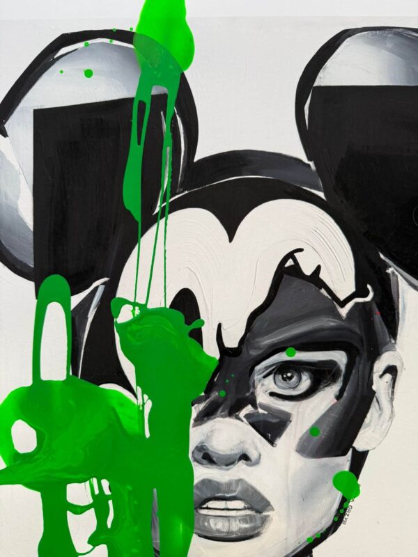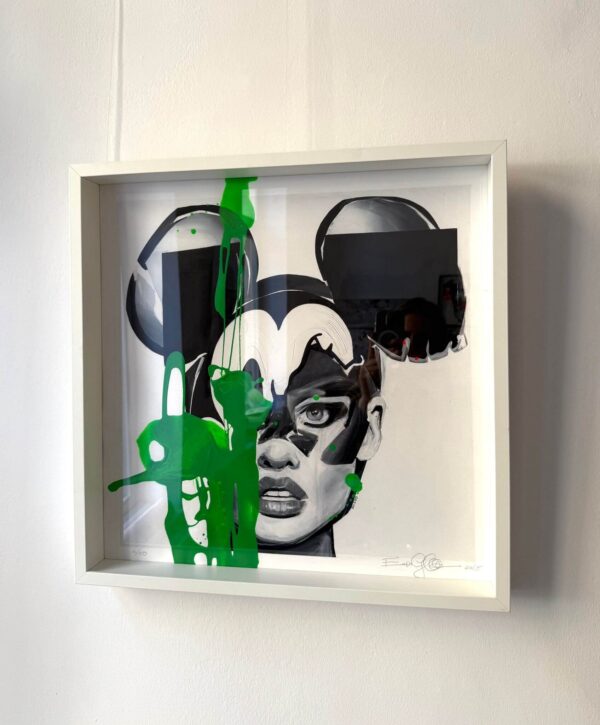Each print is made on high-quality paper and partially hand-painted by the artist. The base print remains black and white, while the colorful accents are added manually, making each artwork unique. Additionally, each piece is numbered and signed on the front margin.